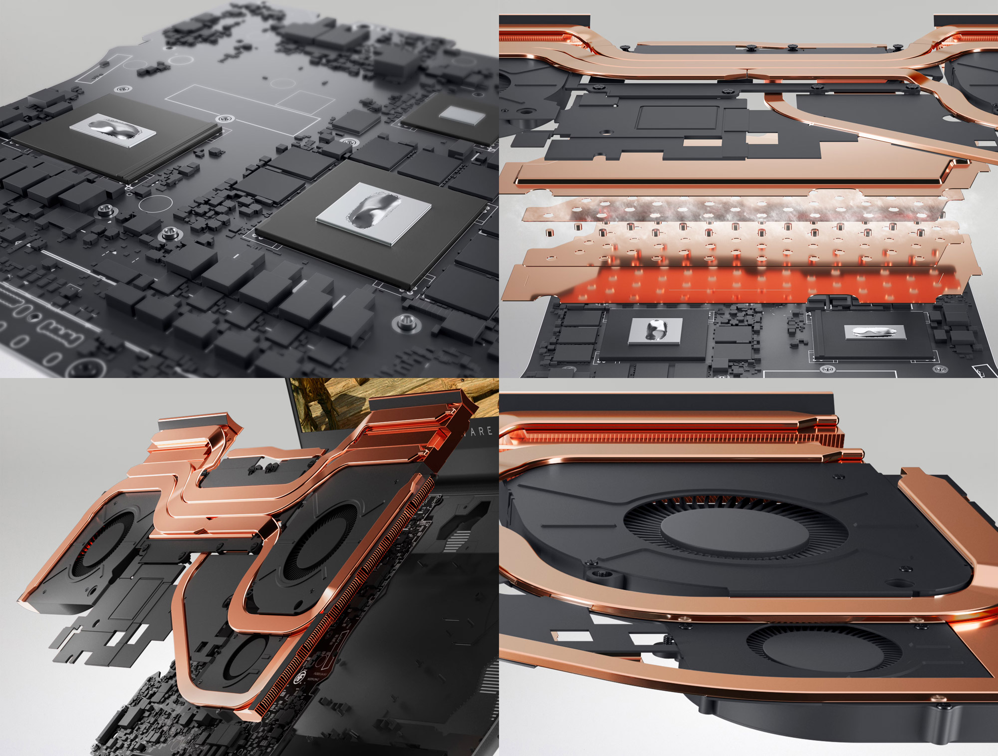 - многоканальная система охлаждения с раздельными тепловыми трубками для ключевых компонентов;