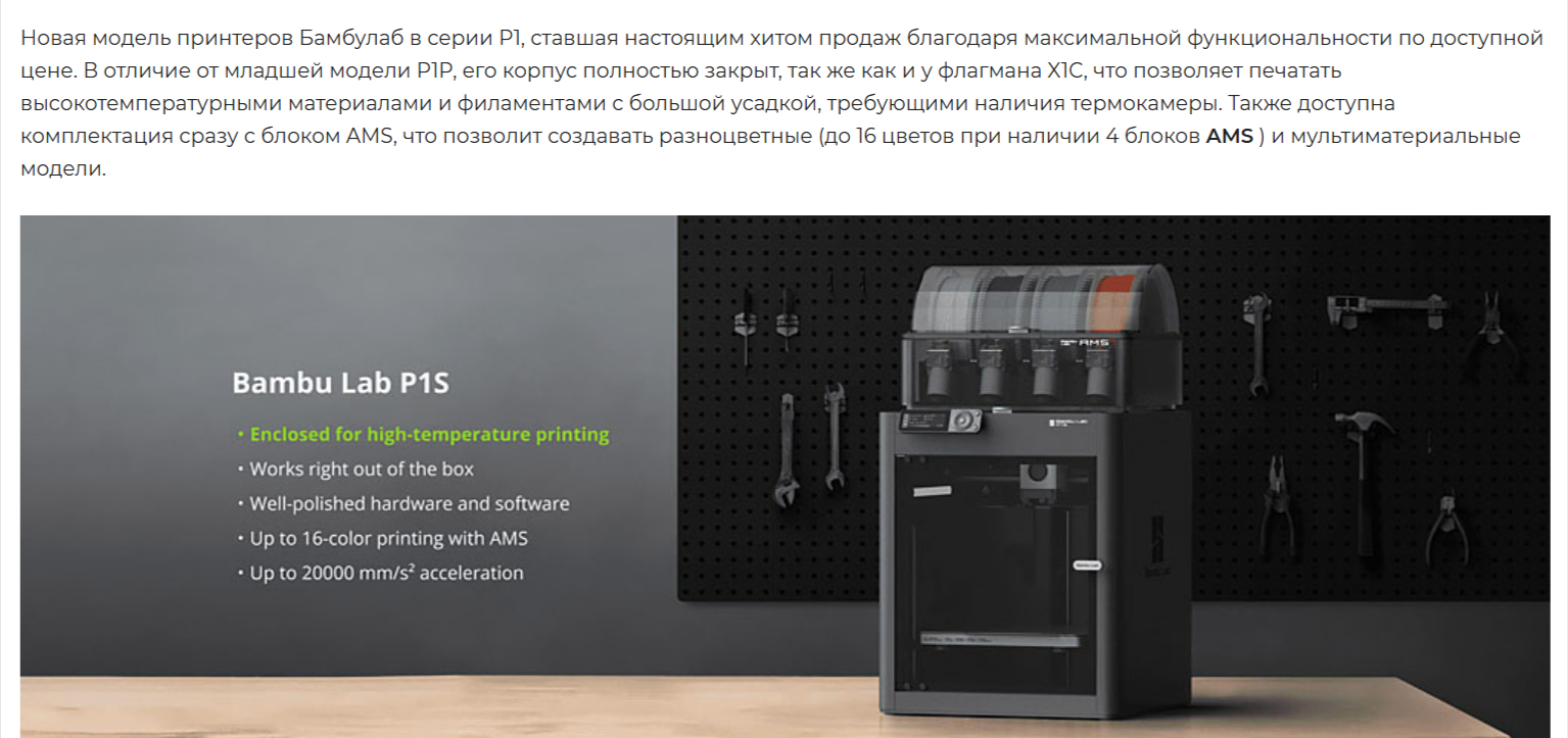 3D-принтер Bambu Lab P1S Combo + AMS